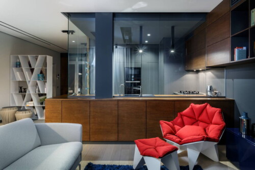 - Кухня та їдальня — скляні міжкімнатні двері можуть слугувати стильним розділенням між кухнею та вітальнею, залишаючи приміщення відкритим, але зонованим.