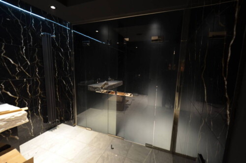 Усі моделі виготовляють із загартованого скла, що гарантує їхню міцність і безпеку. Двері можуть мати різну товщину, а каркас таких конструкцій часто виготовляється з алюмінію, що додає довговічності та трендового вигляду. А декоративні елементи, такі як дзеркало чи комбіновані матеріали, дають змогу створювати унікальний дизайн.