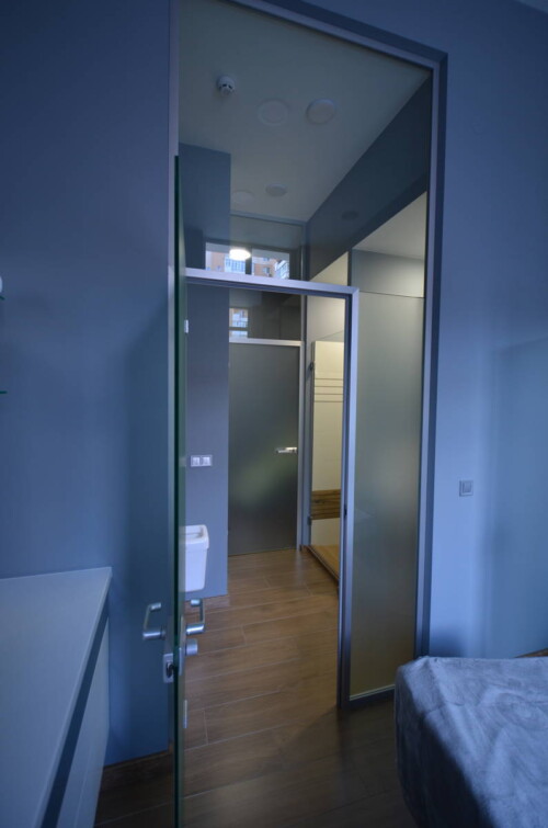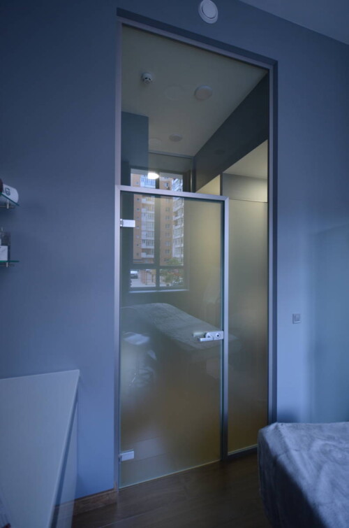 - Маленькі кімнати — прозорі полотна додають простору та світла. Міжкімнатні моделі зі скла дозволяють краще використовувати природне освітлення. Крім того, двері скляні матові не вбирають вологу, стійкі до грибка та легко очищуються, що робить їх ідеальними.