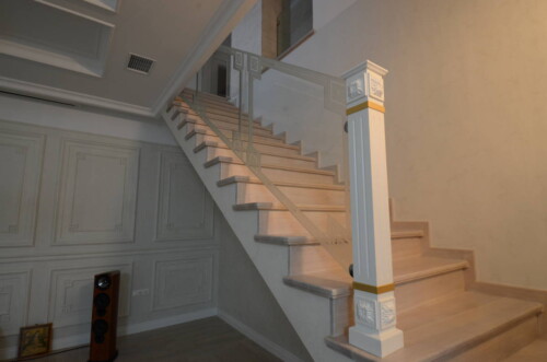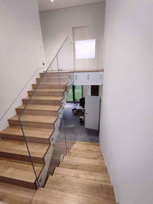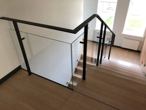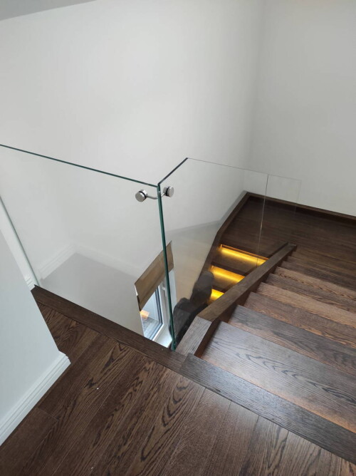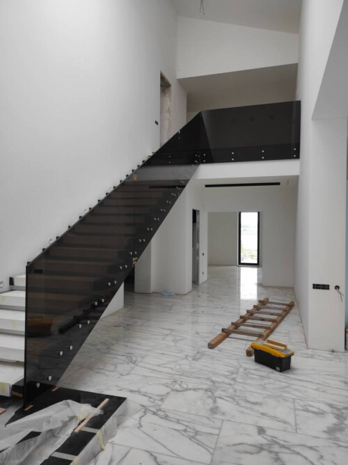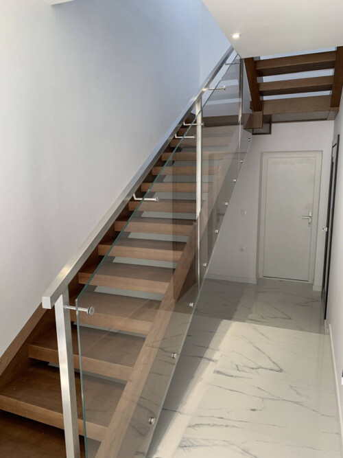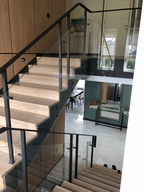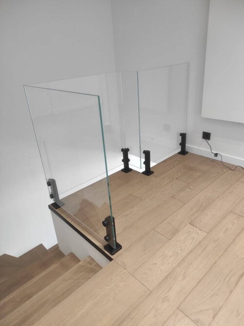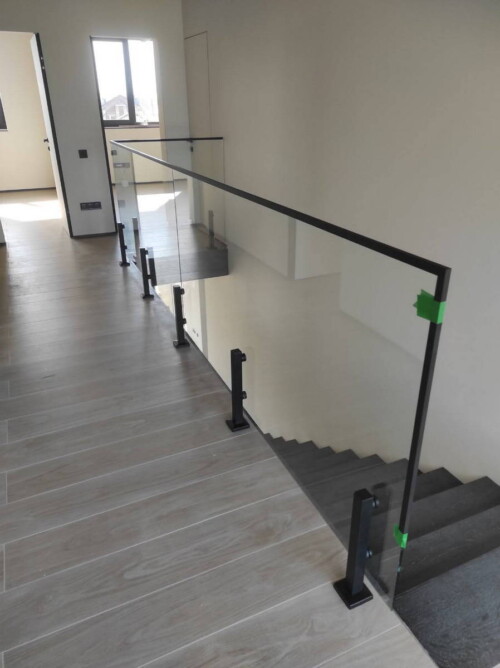 - Безпека без компромісів. Завдяки використанню загартованого або триплекс-скла, такі поручні є міцними та безпечними. Це особливо актуально для будинків із дітьми, адже скло не має гострих кутів або проміжків, у які можна застрягти.