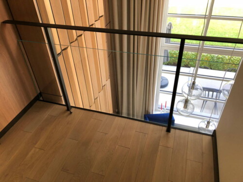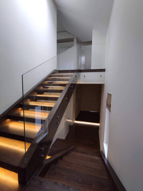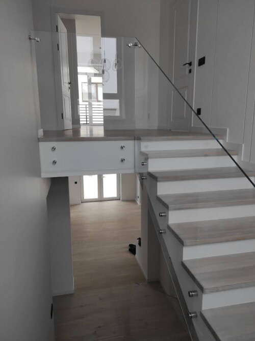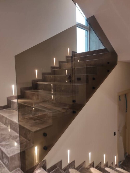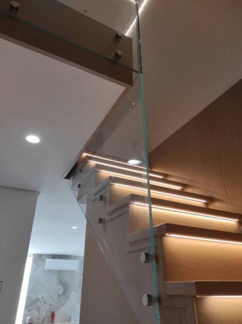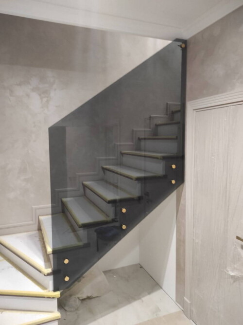 - Приміщення з обмеженим освітленням. На відміну від дерев’яних чи металевих поручнів, скло не блокує світло, що робить його чудовим рішенням для невеликих або темних приміщень.