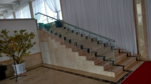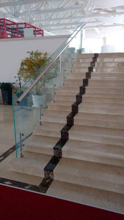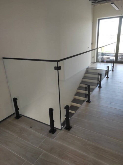 - Міцність. Використання загартованого скла гарантує надійність. Цільно скляні перила витримують значні навантаження, що робить їх ідеальним варіантом для квартир, офісів, торгових центрів і ресторанів.