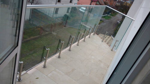 - Стійкість до зовнішніх впливів. Скло не піддається корозії, не втрачає прозорості та не потребує складного догляду. Це робить скляні перила на балкон відмінним вибором для приміщень з високою прохідністю.