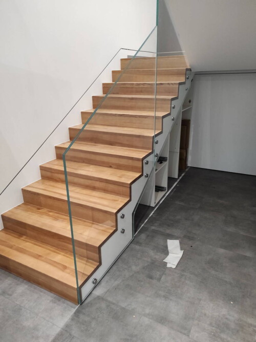 - Простота догляду. Скляні перила для сходів легко чистити, вони не потребують фарбування чи спеціального догляду, як дерев’яні чи металеві конструкції.