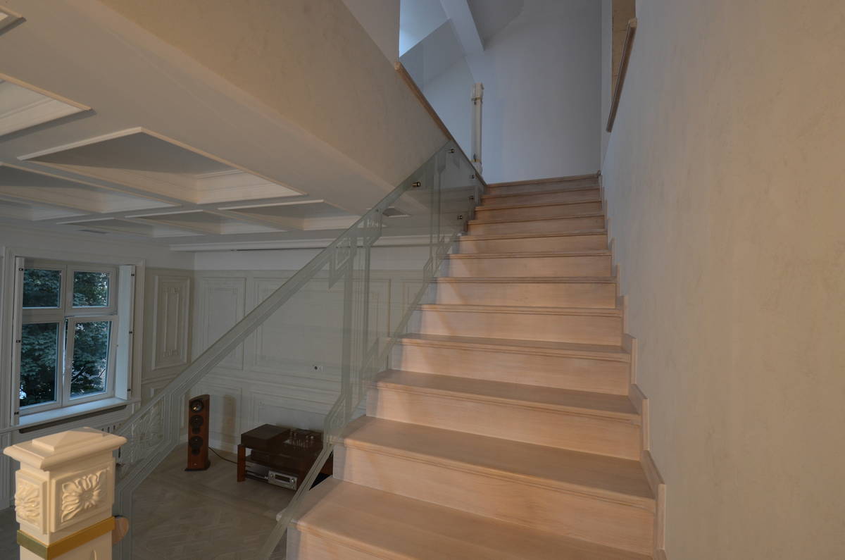 - Приміщення з обмеженим освітленням. На відміну від дерев’яних чи металевих поручнів, скло не блокує світло, що робить його чудовим рішенням для невеликих або темних приміщень.