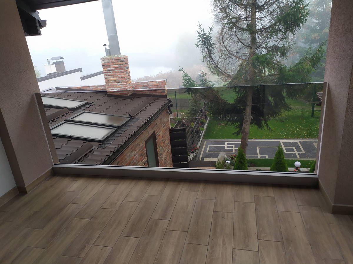 - Стійкість до зовнішніх впливів. Скло не піддається корозії, не втрачає прозорості та не потребує складного догляду. Це робить скляні перила на балкон відмінним вибором для приміщень з високою прохідністю.