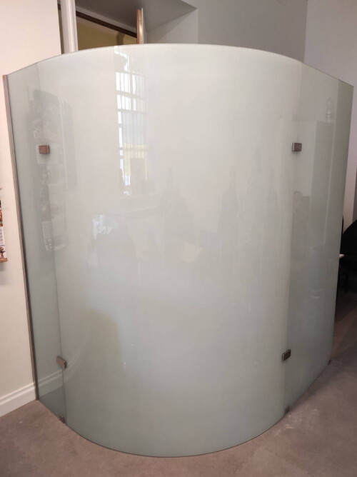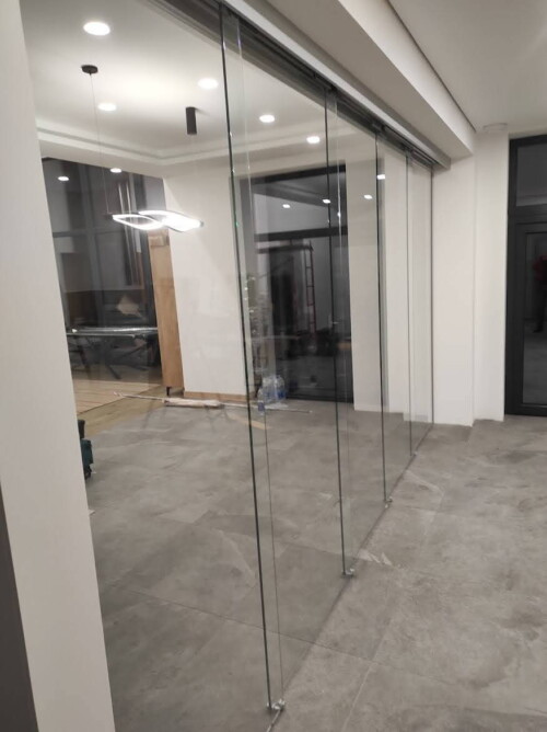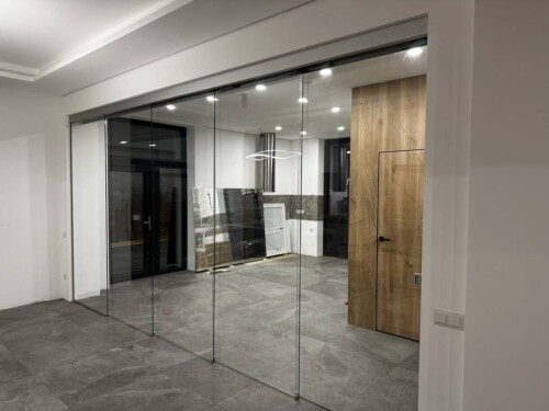 Зонування приміщення за допомогою скляних перегородок. Таке рішення здатне наповнити його світлом і візуально розширити простір. Прозорі, або матові скляні перегородки можна використовувати в офісних, виробничих і торгових приміщеннях. становлення офісних перегородок дозволяє візуально збільшити приміщення, в той же час забезпечити звукоізоляцію кабінетів.