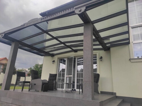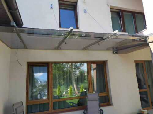 - Довговічність. Конструкція зі скла не боїться дощу, снігу, вітру й легко витримує сильні температурні коливання. Скляний дашок не деформується з часом, не жовтіє, не тріскається на сонці, як це часто буває з пластиковими варіантами.