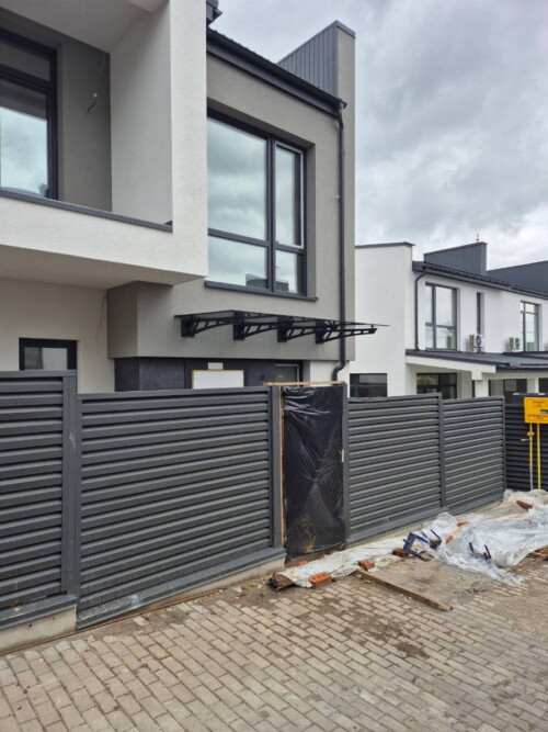 - Естетичність. Поверхня козирка виглядає сучасно, стильно і не обтяжує фасад, доповнюючи металеві, кам’яні чи бетонні елементи. Ідеально вписуються в сучасну архітектуру, формуючи легкий і витончений вигляд будівлі.
